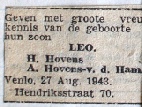 Geboorteaankondiging van Leo Hovens, eveneens aanwezig in het Dagboek.