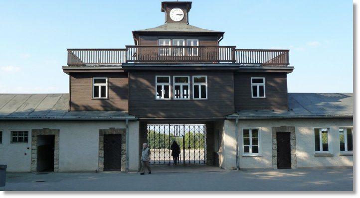 Via het Poortgebouw en door de poort met het bekende opschrift; ‘Jedem das Seine’ betreedt men het kampterrein. In de zijgebouwen bevinden zich de strafgevangenis en de dienstvertrekken van de SS-leiding.