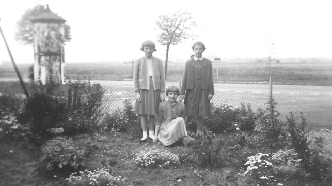 Deze foto uit 1955 is genomen in de tuin van de familie Schreurs, Tegelseweg 235 (laatste huis aan de oostkant)