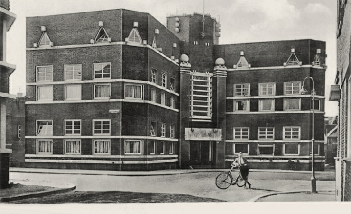 politiebureau op de hoek van de Lohofstraat en de Prinsenhofstraat, gezien vanuit de Prinses Beatrixstraat. Gebouwd door aannemer Frans Mans naar ontwerp van de Venlose gemeenteambtenaar A. Flink in 1927.