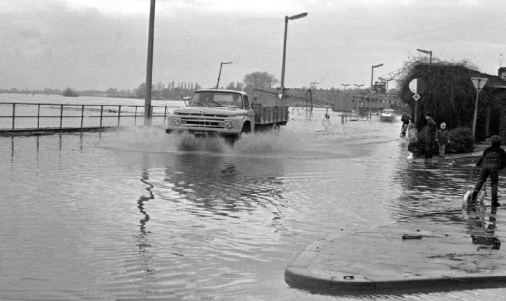de Maaskade onder water.