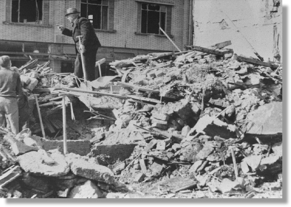 Afgaande op de ramenpartij - het gebombardeerde City theater aan de Vleesstraat.